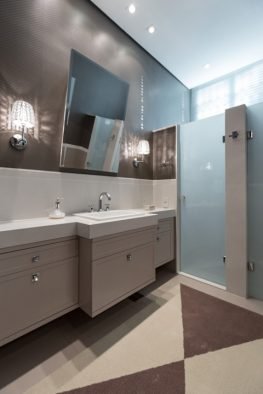 Entre os destaques está o pé-direito com altura diferenciada. “Mesmo com esse detalhe, conseguimos criar ambientes acolhedores”, diz. Os novos revestimentos, da Costaneira Premium, ressaltam a proposta do arquiteto e evidenciam o mix perfeito entre o clássico e o contemporâneo. Segundo Jorge, tecidos, cortinas e papéis de parede, da Horizzon Decor, acentuam a sensação de aconchego nos cômodos.
